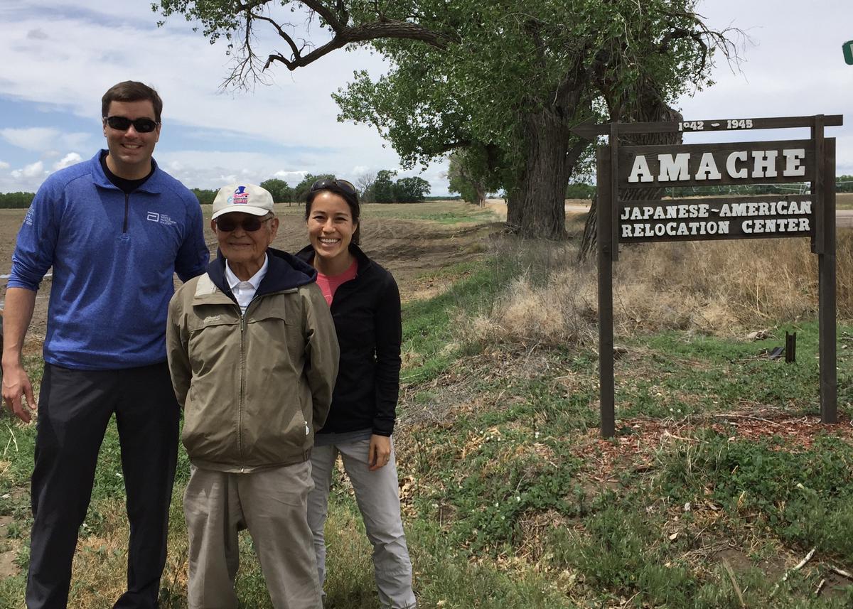 Gayle talked with her dad and he agreed to attend the pilgrimage. It had been more than 70 years since he’d last stepped foot on Amache, and he felt it would be meaningful to revisit that part of his life — especially with his kids and grandkids. So, in late May of 2018, Gayle and her dad made the 15 hour drive from Chicago to Colorado. Packed in the car with them were Gayle’s husband Cary, daughter Kara, and son-in-law Jonathan.